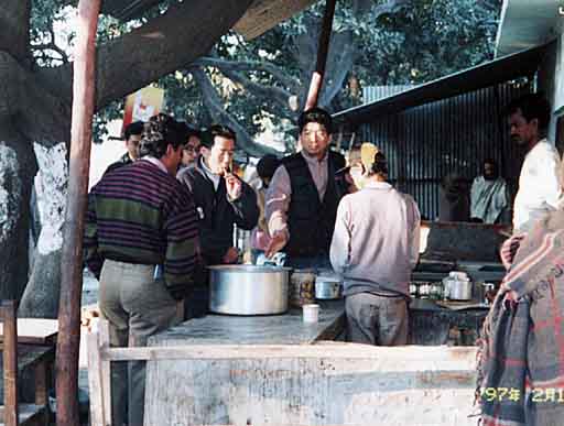 チャイは紅茶とミルクと生姜(シナモンか?)を混ぜたような、不思議な味がします。それを素焼きのコップで頂きます。素焼きなのですぐに飲まないとコップに染み込んでしまいます。最初は生姜の様な香りが強いのでちょっと戸惑いますが、慣れてしまえばGOOD! 結構いけます。値段はナント七円程。飲み終えたコップは地面に叩きつけてハイッご馳走さま。素焼きなだけにあっという間に土に帰ります。インドはとっても地球に優しい国なのです。必要にして十分なモノと余計なモノ。文明先進国といわれる我々は、今一度、考え直す必要がありそうです。
