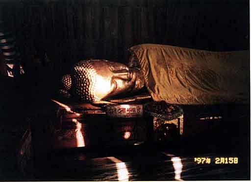仏教の開祖『お釈迦さま』ゆかりの地を訪ねて、1997年2月12〜20日のインド仏跡参拝記の第4回です。 我々一行はベナレスを後に、お釈迦さまのお亡くなりになった場所、クシナガラへ向かいました。 お釈迦さまがお亡くなりになったことを『涅槃(ねはん)に入られた』と申します。肉体の死をもって、完全な悟りに入られたということです。肉体は生きる限度があります。ですがお釈迦さまの説かれたみ教えは、その肉体が滅びた後も滅することがありません。現に二千五百年もの間、脈々と人から人へ語り伝えられ、『生老病死(しょうろうびょうし)』に“四苦八苦”するいのちを温かく支えてきたのです。