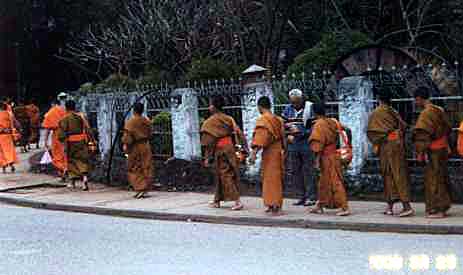 ルアンパバンで托鉢に出会いました。