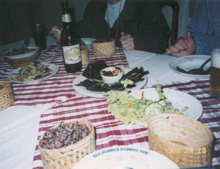 食事:食事はとても美味しいです。あまり辛くはありません。ベトナムや中国の流れでしょうか、野菜炒めなども中華料理風の味付けがしてあり、違和感がありません。違和感がないといえば餅米。これもよく食べます。ラオス産の塩はコクがあるグットなものなので、お土産にも喜ばれるでしょう。ちょっと重いけど。