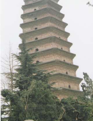 兵馬俑(写真1)は西安市外の東にある秦の始皇帝の陵墓に埋葬された等身大の精巧な埴輪で、人馬併せておよそ千体が発掘され、埋葬された当時の、軍隊が進軍する様に並べられており、その様は壮観のひと言です。 ただ、我々の眼にする兵馬俑は素焼きの燻色をしていますが、本来は彩色も精巧に成されていたのですが、発掘され空気に触れると、瞬く間に色が飛んでしまったそうです。その為、現在は調査が進められているものの、発掘はされていない様です。 この兵馬俑は三十年ほど前にたまたま井戸を掘っているときに発見されたそうで、それ迄はこれほどの規模のものが人知れず畑の下に埋まっていたそうで、写真に残る精巧な彩色と共に、世の儚さを感じてしまいました。 その後、西安郊外を大回りして、南にある草堂寺に向いました。ここは『仏説阿弥陀経』を漢語に訳した鳩摩羅什のお寺です。今から千五百年以上前の人で、さすがに当時の建物は残っていませんが、再建され鳩摩羅什堂が建っています。当時と同じ姿なのかは判りませんが、まさにこの場所で、日頃、拝読している『仏説阿弥陀経』が漢訳されたのかと思うと感慨に耽ってしまいます。境内は鳩摩羅什が『 法華経』を漢訳したこともあり、日蓮宗の有志の方々によって整備されているようです。 ここは観光地というわけではないので、境内はいたって静かで、人影も疎ら、周囲も農村風景が広がるばかりです。結果、昼食は近所の食事を出してくれる普通の農家にお世話になりました。一般的な家庭料理なのでしょうが、今回の旅行で一番おいしい食事でした。 続く香積寺は中国に浄土教を広めた善導大師の遺徳を偲んで、ご往生の後に建てられお寺です。中国の人がお参りに訪れており、善導大師のお徳を今に伝えています。 日本の浄土宗の有志の方々によって境内は整備され立派な山門を構えていますが、建立当時の建物は善導大師の遺徳を讃えた善導塔(写真2)のみです。先端は崩れていますが、全長三十三メートルの姿には圧倒されます。中には、浄土宗の法然上人が善導大師から法脈を受けるの図が安置されています。