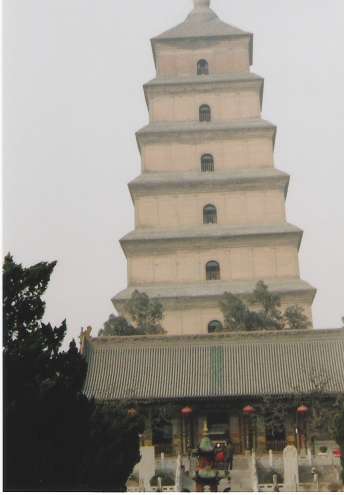 本堂で読経すると地元の僧侶に「そのお経は何か?」とたずねられ、答えると「ああそうか」といった顔をされました。当たり前ですが、今の中国と日本では、漢字の読み方が違うのです。 その後、『西遊記』でお馴染みの三蔵法師玄奘がインドより持ち帰ったお経や仏像を納めた大雁塔(写真3)やシルクロードの出発点、安定門と巡りました。どちらも西安の有名な観光地ですが、中国の人は造るものがイチイチ大きいなァと思いました。