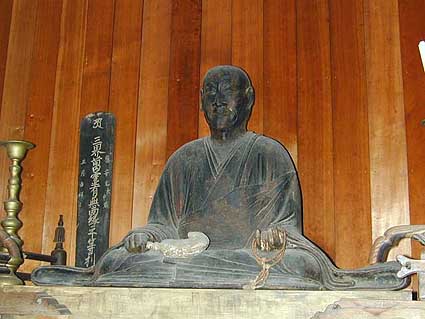 性信房座像 この座像は拂子(ほっす)を持っている。群馬県指定重要文化財に指定されているが、 きれいに安置されているとは言い難い。 |