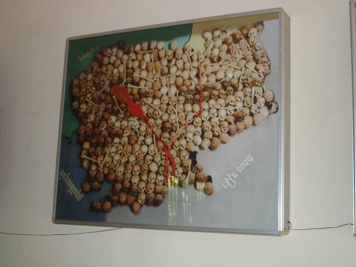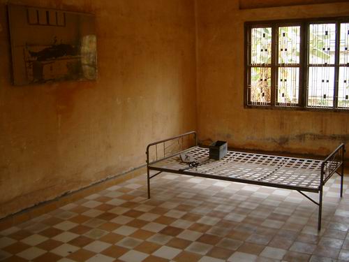 ベトナム軍がプノンペンを制圧したとき、クメール・ルージュは敗走します。彼らが去った後のこの場所には、殺されたままの政治犯とされた人々の遺体が多数、ベッドに鎖でつながれて、拷問の後も生々しく、血の池を作ったままで放置されていました。大人を殺した子ども達。この拷問部屋からは、今も人々の嘆き声が聞こえてくるような気がします。「なぜ君と僕が憎しみあわねばならないのか」と。