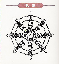 か「お釈迦さまや、お釈迦さまの説かれた“真理”を意味してるんだよ。そもそも法輪って、車のタイヤをあらわしているんだ。車というのは戦車のことで、通常の王は武力で人々を治めるでしょ。だから車輪は王者を意味するんだ。だけど、お釈迦さまは、武力でなく、その教えでもって、人々の心に安心をもたらすから、お釈迦さまはただの車輪ではなく『法輪』っていうんだよ」
