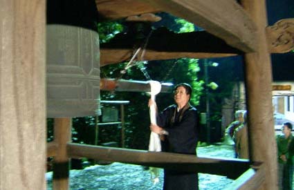 午後11時30分住職の挨拶のあと、最初に住職が鐘を鳴らします。引き続いて総代・世話人そのあと、一般参拝者に鐘を鳴らして頂きます。今年も若い家族単位で参拝される人々が多くなったなと、それが印象的でした。