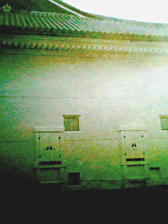 それは真っ白な漆喰の大きな壁でした。正面からみると柱や床など、昔のままの部分を残した箇所が目につきますが、裏側のこの漆喰、一点の曇りもない洗い立てのシーツのような巨大な壁を見ますと、確かに御影堂が修復されたことをますます実感することができるのであります。