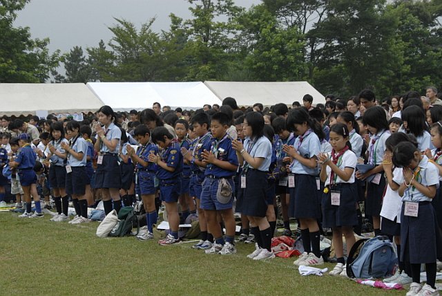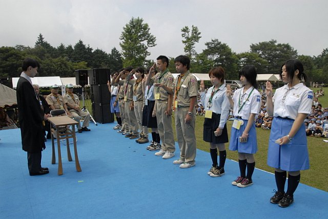スカウト指導者会総裁でいらっしゃる新門様も3泊4日の全日程参加され、開会式にお言葉をいただき、合同礼拝では仏教章の授与をしていただいた。富士登山にも挑戦され、砂走り下山を体験された。また1泊は野営(生まれて初めてテントでご宿泊されたらしい)されるなど積極的に参加された。